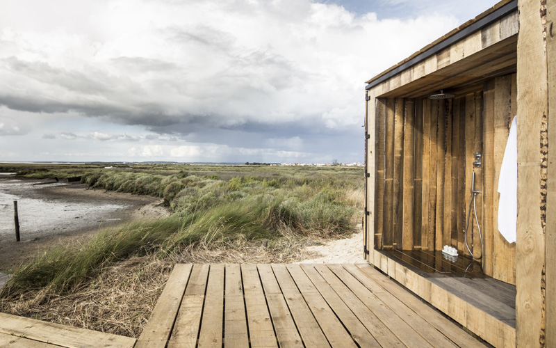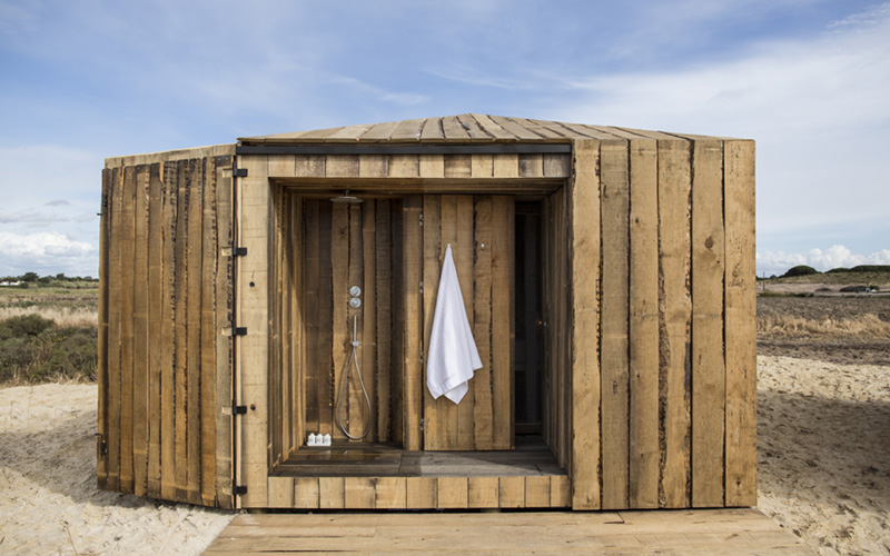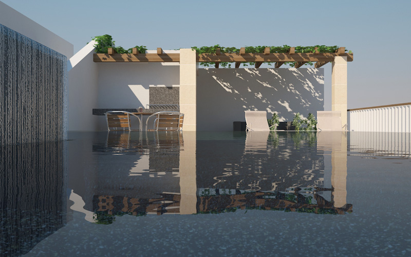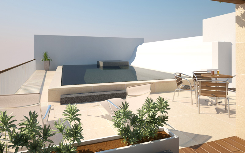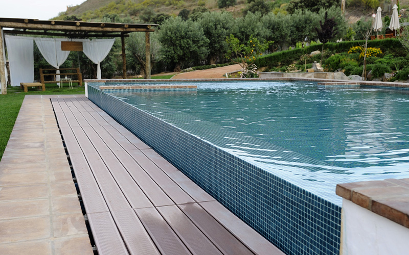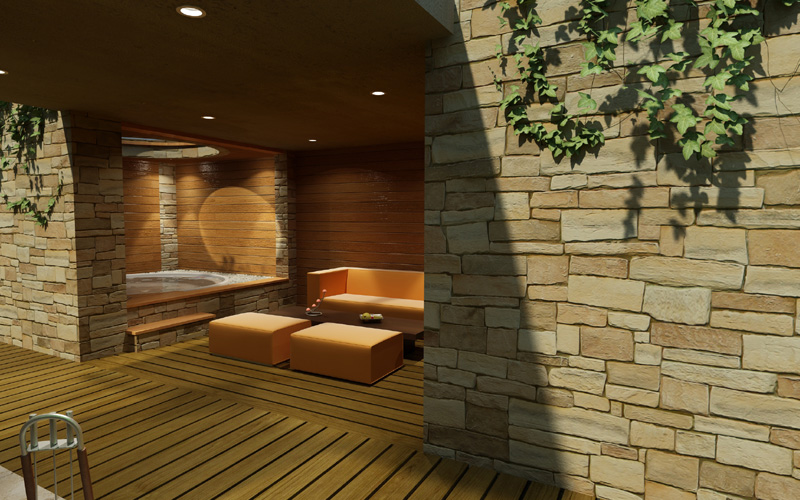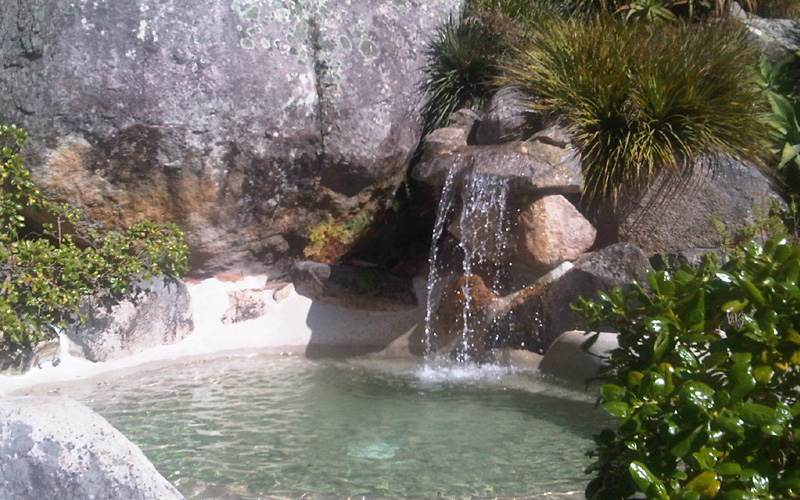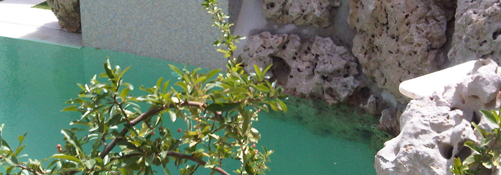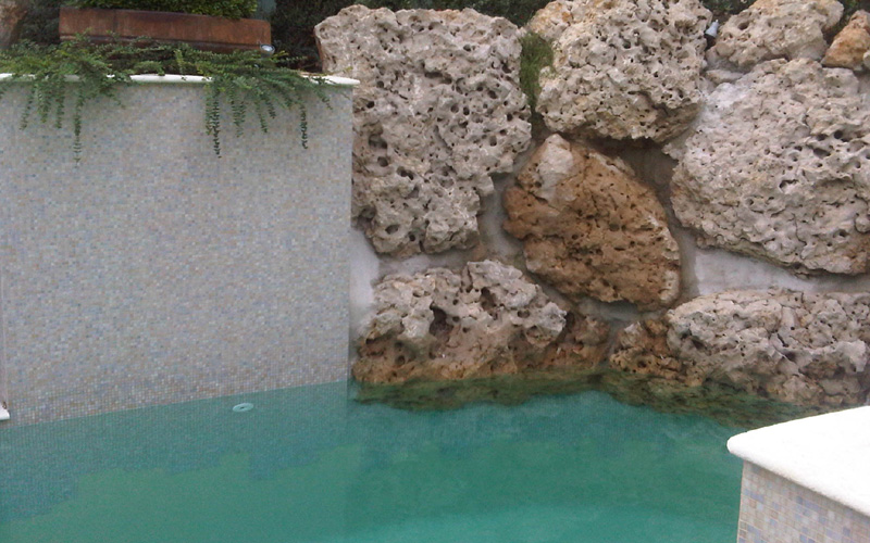 Swim spa rocha natural revestimento Krystalkrete desert sand