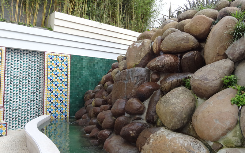 9 x 5mt Spa iserido,cascata tratamento Ultravioletas revestimento Pedra,cobertura telescopica